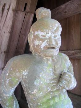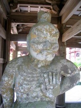 石造仁王像 初八阪神社 国東町 原 町指定有形文化財 仁王像の由来 「この仁王像は、県内で一番大きく、石工は国東町浜崎の佐藤茂助政近の作で、文政7年(1824)この地に建立され、神仏習合の時代は多くの崇敬者から親しまれていました。 しかし、明治元年(1868)の神仏分離令によって廃仏毀釈運動が起こり、仁王像の一部が破壊され、明治4年頃に台石を残したまま仁王像のみが、西隣の元国東小学校山吹分教場入り口に移転されていたと考えられます。 この度、国東町給食センター建設に伴い、地元区民の強い願いと関係者のご理解で、元の台石に130年ぶり(平成14年4月27日)に無事遷座復元されました。 堂々とした風格が漂う一対の仁王像が、神社の神門前に立つ姿は珍しいと注目されています。 下の刻字は、淫禍 善福 とあり、淫らな行為や禍いを戒め、善くして福となし、外敵を押し退け心を清らかにして参拝する意味であります。」 |