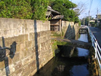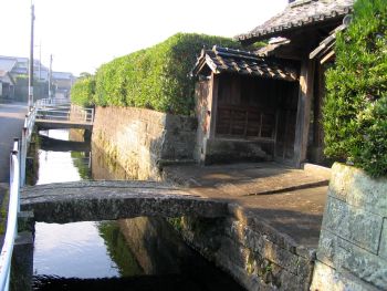 武家屋敷・武家門・石橋 加世田市麓町 「島津の直轄地加世田郷一万三千石の中心であった麓地区には、別府城を取り巻くように、およそ二百数十軒の武家屋敷が並んでいた。 現在は、そのほとんどが改築・改造され、昔の姿を残すのは数軒となっているが、武家門などはかなり残されている。 水路に架かる石橋、石垣といぬまきの生け垣に映える格調高い武家門、玄関に通ずる直角に曲がった通路、目隠しの生け垣など当時の風情が偲ばれる。」 |