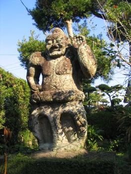 | 仁王像 「この仁王像は日新寺の大門前にあったが、明治初年廃仏毀釈のとき左像をここに移した。右像は不明である。」 |