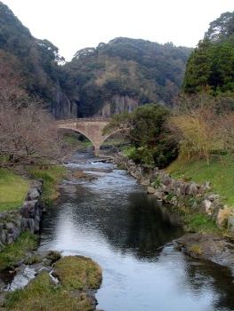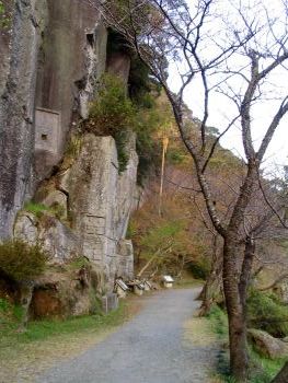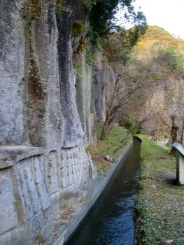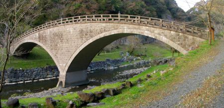 偲橋 清水磨崖仏へは、この2連の石橋を渡って行きます。 偲橋は、石橋のように見えますが、表面に石板を貼り付けたRC橋だそうです。 |