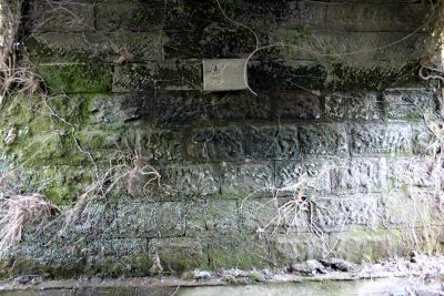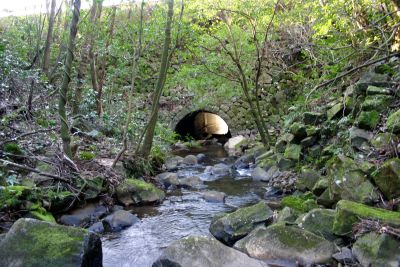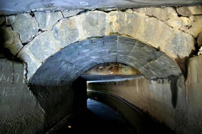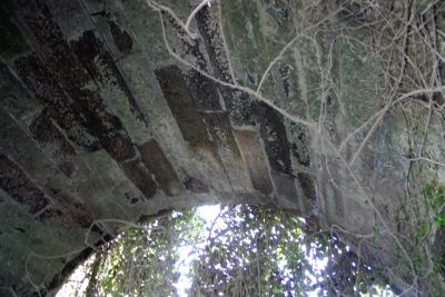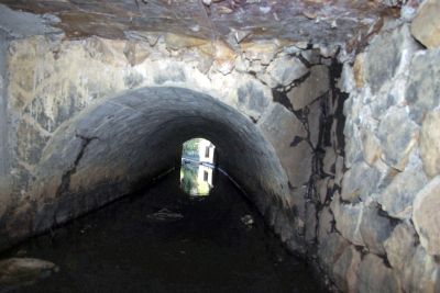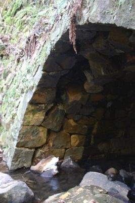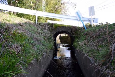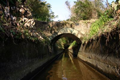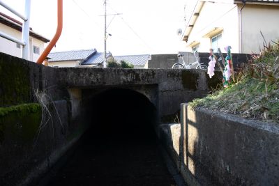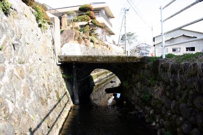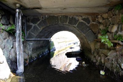 落鹿2号上橋から水路内を下流側へ歩きここへ出ました。 この間の水路上部はコンクリートで蓋がしてあります。 石橋は昭和7〜8年に架けられ、上部は昭和27〜28年にコンクリートで蓋がされたそうです。 |
