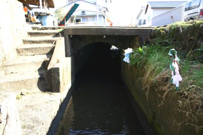 1号橋から水路内を歩いてこちら側に出ました。 1号橋と1号下橋の間の水路上部はコンクリートで蓋がしてあります。 |