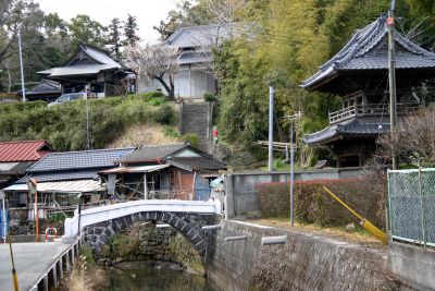 県道23号線真城小学校の300m西から細い道を北へ進んですぐ、矢護川に架かっています。 |