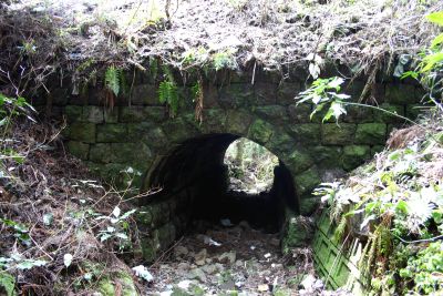 鶴の谷橋 南阿蘇村(旧長陽村)長野 山王谷川 橋長:9.2m 橋幅:9.8m 径間:3.65m 拱矢:1.8m 環厚:39cm 架設:大正初期 要石のところにぶら下がっている傘は健在でした。実は、前回訪れた時、県道149号線を南下して来たから今回は北上しようと思い(勘違い)最初に遭遇したのがこの橋でした。新規と思い、喜んで橋の中をくぐり抜け、反対側に出てこの傘を見て気付きました。 |