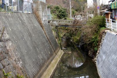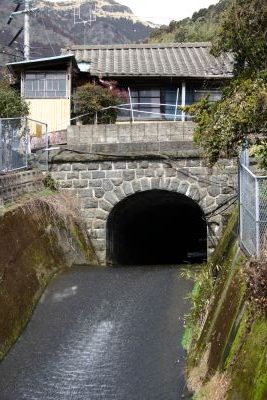 国道57号線、立野小前を右手に派出所を見て170m北上、右折。200m先九電放水路に架かっていますが、下流側からでないと見えません。 |