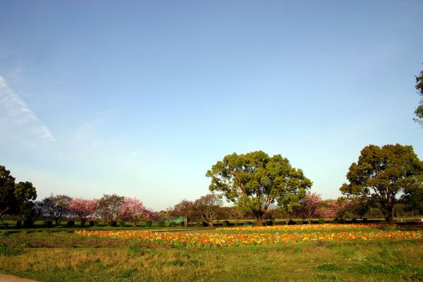 八重桜とつつじと菜の花が満開です