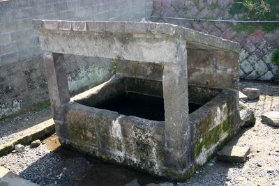 まつどくんかわ(弘法の井川) 坊津町 町指定文化財 「かつては、この形式の井川は町内に数多かったが、今日では姿を消し貴重なものである。この水は年中こんこんと涌き。かれることなく付近の人々の生活用水、鰹漁業等の産業用水として使われてきた。 昔、弘法大師が西国行脚の途中、のどの渇きを覚え、この浜に杖をさされたら、水が湧きでたものと伝えられる。昔は箱型だったが大正13年に現在の姿に改造された。」 |