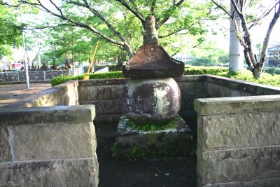 山内石塔群 「山内石塔群は、ここから南東約1キロの丘陵裾部に所在していたもので、昭和57年に発掘調査が実施され、三段に削平された斜面から五輪塔約450基、板碑約80基が確認された。 出土時はすべて倒壊した状態であったが十数区に復元され、数基単位で五輪塔を建立する区、「コの字形に五輪塔や板碑を配置する区などその特徴がとらえられた。 当地に隣接して安置されている弘安八年(1285)銘の県指定五輪塔も同地より搬入されたものと伝えられ、共に十二院を持ち栄えたとされる勢田寺と関連付けられる。 紀念銘のあるものも数基確認され、最も古いものは応永二十五年であったが、さらに古い特徴を持つ五輪塔も存在し、本石塔群の建立期間は鎌倉時代末期から江戸時代初期の約三百年間に及ぶものと思われる。 このように大規模な石塔群の発掘調査例は国内でも少なく、中世の武士文化の一端を知る貴重な遺跡であることから風化防止の化学処理を施し、この地に移設保存したものである。」 清武町教育委員会 |