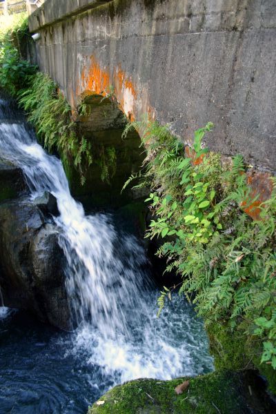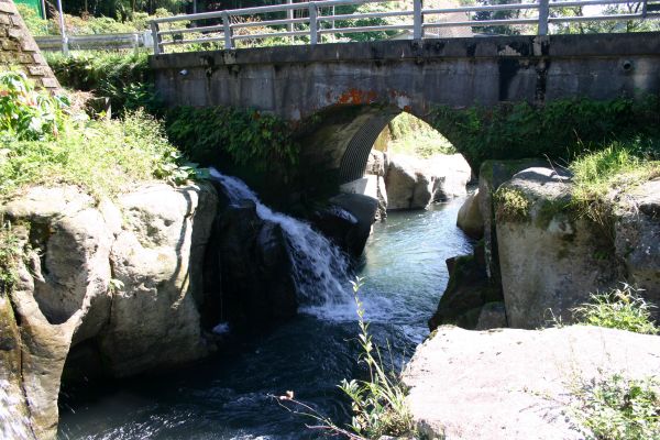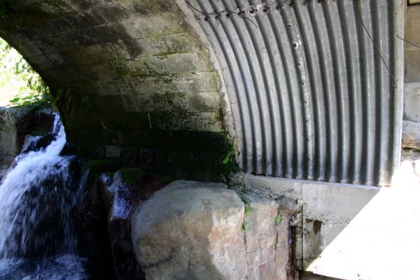 ![]() 下流側はコンクリートで拡幅され、コルゲートパイプで覆われています。 |