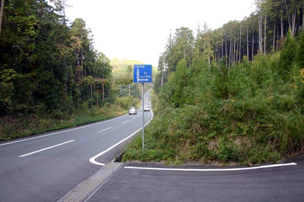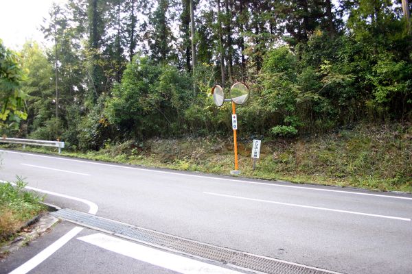 ![]() 小中尾から広域農道で700mほど南下すると、県道674号線へつながる道路があります。 この道路が広域農道にぶつかり、その方向の谷底に目的の水路橋が架かっています。 |