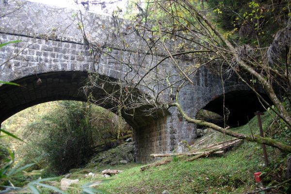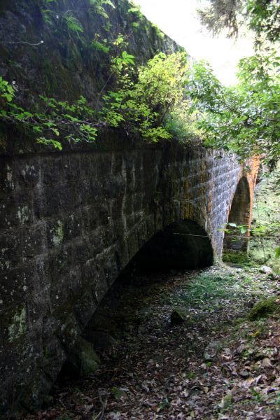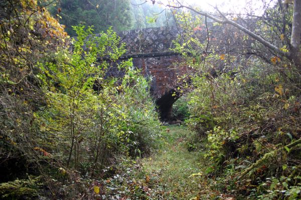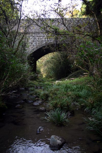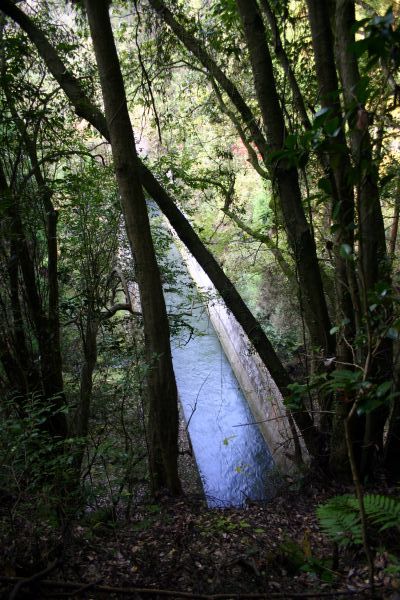 ![]() 谷へ降りていくと目指す水路が見えてきました。 3度目の挑戦にしてようやく到達できて感激しました。 水量豊富な現役の水路です。 |