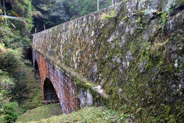 | 日田市天瀬町女子畑 高取谷 橋長:47.9m 橋幅:6.3m 径間:9.1m 拱矢:1.8m 環厚:39cm 3連アーチ |
