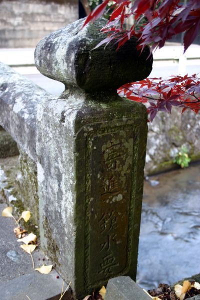 ![]() 親柱には寄進者 鎗水要 の刻が |