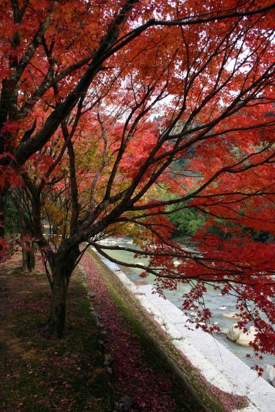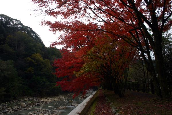 裏を流れる境川沿いは見事に紅葉しています。