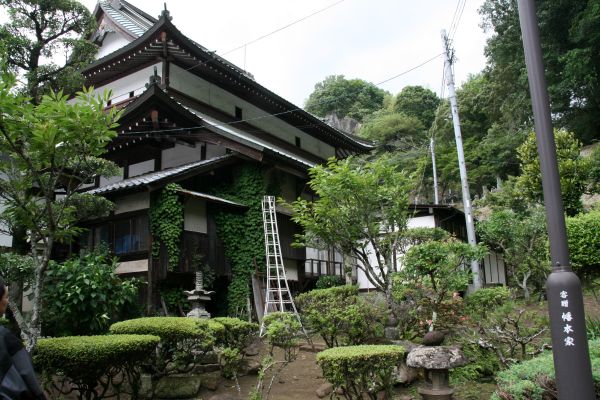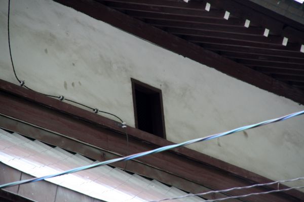 | 本堂の銃眼 切腹までの時間稼ぎのためのものだそうです、このお寺は出城としての役割を果していたそうです 11.西光寺石橋へ |