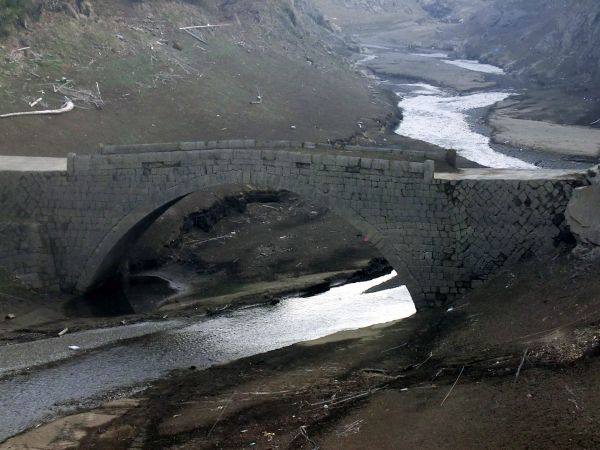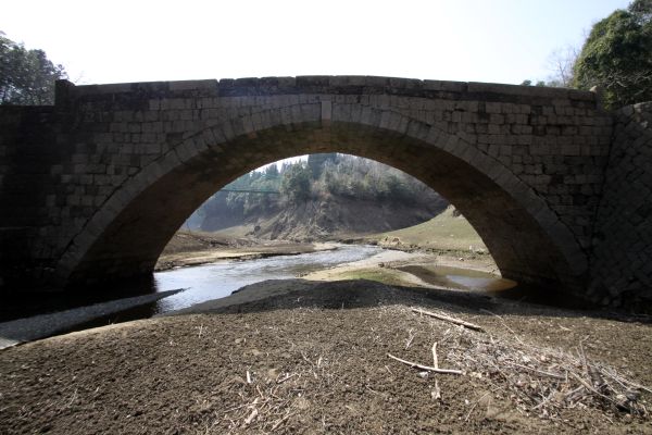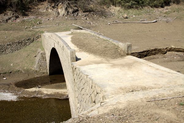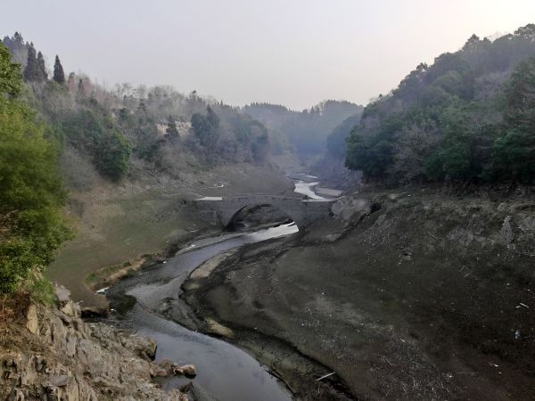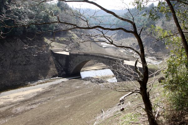 | まいとしいちど ダムの水は干あがり 底に沈んだ石工の技が 幽玄の叙景詩となる ちいさないしばし 詩 倉岡俊子(遍歴同人) |