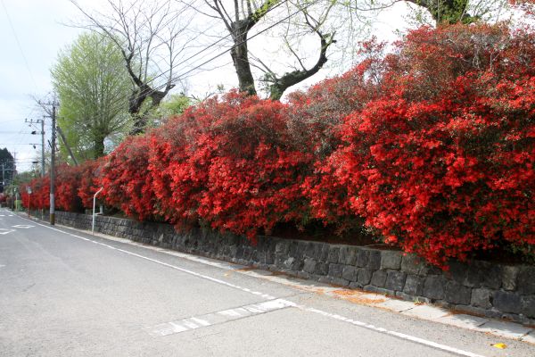| 大河平つつじの由来 「このつつじは、大河平領主、大河平左近監隆俊という人が島津義弘公の設計で邸宅を造った際、霧島山中より映山紅(キリシマツツジ)の見事な物だけを集めて 庭木にしたものといわれます。植えられたのは天正十年(今から約四百年前に植えられましたが、大河平一族は永禄七年五月三十日(今から四百二十七年前)伊東軍と戦いほとんど滅亡しました。 これが世にいう今城合戦です。この赤紅の色は、大河平だけしか出ず他の場所で育てても同じ色は出ないといわれます。 それは、大河平一族百余人の怨念の血がこのつつじ色に出るからだといわれるからです。四百年もの長い間、大河平の歴史を見て来たつつじです。大切に育てて下さい。」 平成三年四月設立 大河平小剣道父兄会一同 平成二十三年三月 転記 大河平屋敷絵図 「概略 大河平左近将監隆俊は、戦国末期の天正10年(1582)頃、上大河平の旧領を拝領し、島津義弘の設計で邸宅をつくった。この邸宅が、明治10年の役で全焼したので、大河平隆芳は記憶をたどり、明治33年(1900)3月、絵師の小波南洋魚青に描かせた彩色画である。 屋敷跡は、現在、大河平小学校となっており、庭園の大河平つつじは今も昔の面影を思わせる。」 |