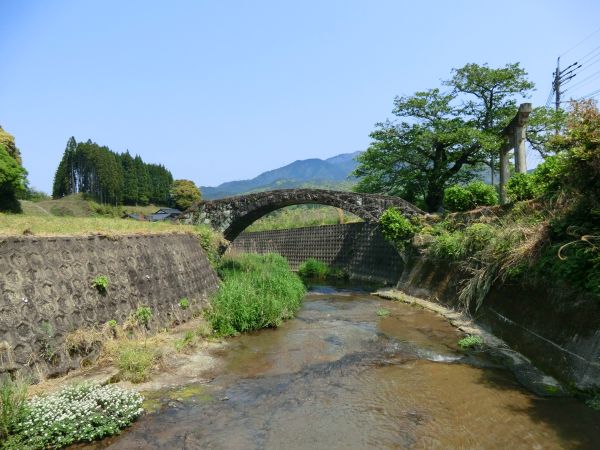 | 唐津市厳木(きゅうらぎ)町浪瀬 橋長:11.0m 橋幅:2.3m 径間:9.5m 拱矢:m 環厚:38cm 架設:大正12年 原又四郎 |