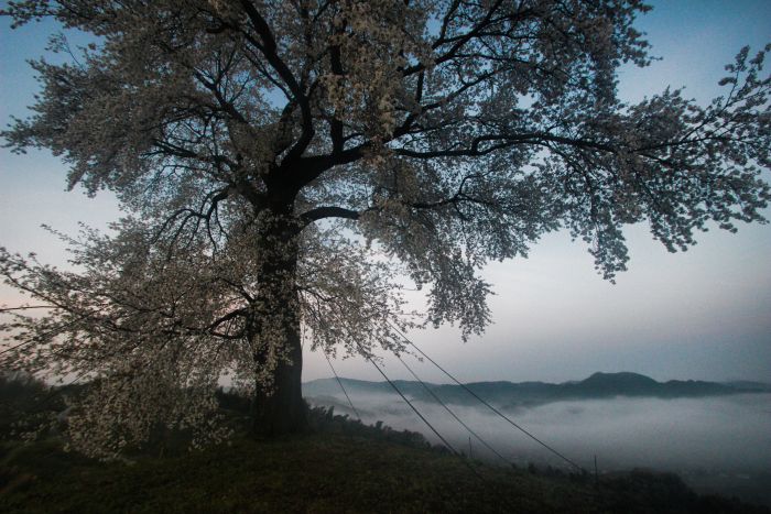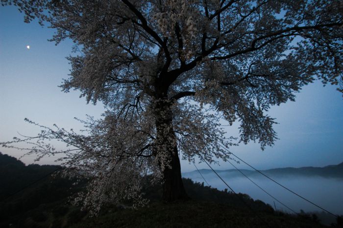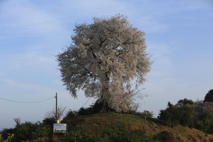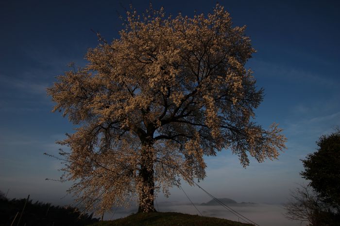 | 天保古山の平家一本桜 開花時期/3月下旬〜4月上旬 「平家ゆかりの地、天保古山の山頂にそびえ立つヤマザクラ。高さ18m、幹まわり2.8mで、樹齢250年(推定)というスケールの大きさです。平家一門の神木として毎年花を咲かせ多くの人から親しまれています。」 みやま市商工観光課 平成26年3月 |