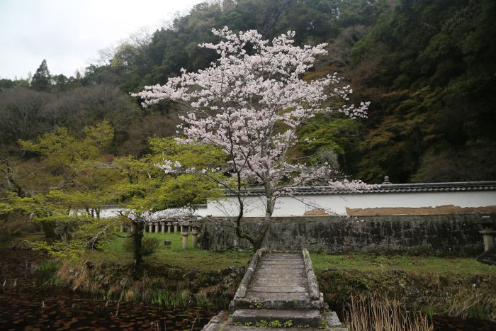 | 国指定史跡 岡藩主中川家墓所 「文禄三年(1594)、中川秀成が岡城に入城し、以後明治に至るまで、竹田は中川氏の城下町であった。この岡藩主中川氏の所領内での墓所は城下碧雲禅寺および城下北方の大船山中(三代墓所)、そして城下東方の小富士山(八代墓所)の三カ所にある。 碧雲禅寺は、慶長十七年(1612)春、初代藩主秀成が御茶屋として建設に着手したものである。その年の夏、秀成は死去したため菩提寺となった。 境内には、御成門につづく土塀に囲まれたなかに龍吟池を配し、その北側山麓に宝塔(変形)、五輪塔形式の初代秀成、二代久盛、四代久恒、五代久道、六代久忠、九代久持、十一代久教の墓塔がある。墓塔は、かつては霊廟建物(御霊屋)のなかに置かれたものであり、二代藩主久盛の御霊屋は隣接する高流禅寺に移築され現存している。」 平成十年三月 竹田市教育委員会 |