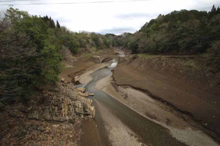 | まいとしいちど ダムの水は干あがり 底に沈んだ石工の技が 幽玄の叙景詩となる ちいさないしばし 詩 倉岡俊子(遍歴同人) |