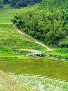 | 東稲葉橋 久住町白丹 稲葉 橋長:7.5m 橋幅:3.0m 径間:7.0m 拱矢:2.5m 架橋:大正13年 これまた田んぼの中によく溶け込んでいます。 西畑橋から県道638号線へ戻り、500m北から左下へ県道沿いに下る。約300m先に架かっています。 |