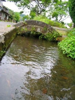 | 石尾野橋 熊本県阿蘇郡産山村 橋長:17.6m 橋幅:4.5m 径間: 拱矢: 架橋:大正12年 石工:野田寅蔵 紫の花はアザミですが、白い花はヒメジョオンだそうです(by向江菊枝様) 後山橋から県道131号線に戻り、産山村方面へ。 県境から400m西、耕院庵バス停より左折、700m先に架かっています。 |