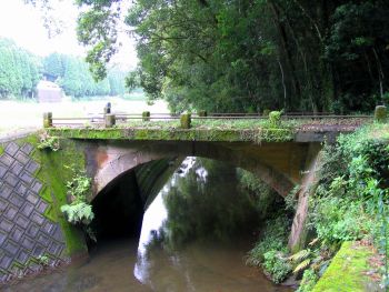 | 水車橋 東市来町田代西 江口川 橋長:7.3m 橋幅:2.5m 径間:5.6m 拱矢:2.3m 架設:明治 ここは探すのに少々てこずりました。 永山橋から県道305号線へ戻り、400m東進、田代保育園入口より20m手前より農道へ右折、50m先に架かっています。 |