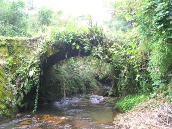 後中橋 吉田町本名後中 本名川 橋長:8.9m 橋幅:2.9m 径間:8.5m 拱矢:3.8m 架設:不明 道路改良により新しい道路ができて、廃道になっています。 東佐多浦の太鼓橋より県道57号線を北西へ500m、吉田麓で県道25号線へ左折。 5.2Km先、内門バス停より右折、西へ1.8Km進むと県道16号線に出る、県道の西側下に廃橋となって架かっています。 |