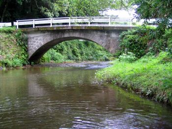 和田橋 吉田町本名谷上 橋長:5.0m 橋幅:3.0m 径間:3.5m 拱矢:1.4m 架設:不明 現役の橋です 本名の太鼓橋から県道16号線を北西に70m、町道へ左折、400m先左折、50m先に架かっています。 |