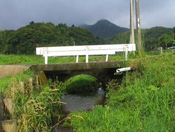 | 諏訪橋 日置郡東市来町養母 江口川 橋長:11.9m 橋幅:4.6m 径間:10.8m 拱矢:3.3m 架設:大正15年 国道3号線、東市来町下神殿交差点(1.1Km東の横断歩道橋に下神殿と書いてあるが、この交差点ではない)より県道304号線を北上、2.9Km先、県道305号線へ左折、900m先交差点を過ぎ、すぐ左折、50m先左手に架かっています。 |