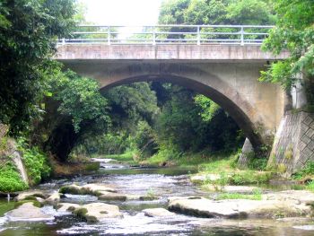 | 大川橋 東市来町北山 大里川 橋長:11.1m 橋幅:4.1m 径間:10.9m 拱矢:4.4m 架設:大正5年 樋之口橋より県道304号線を400m北上、県道309号線へ左折。 600m先酒屋手前を右折、200m下ったところに架かっています。 |