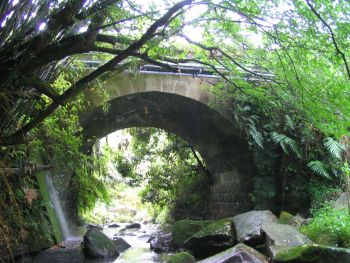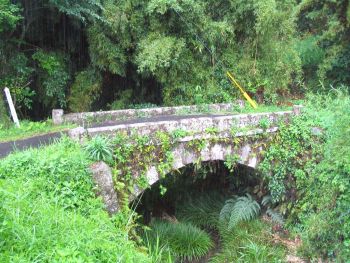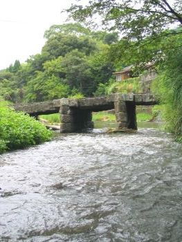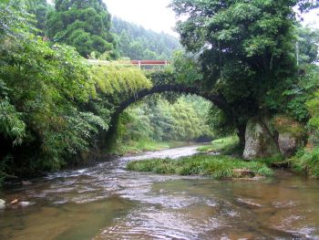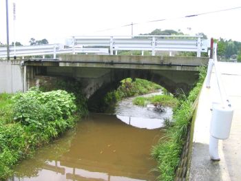| 下山橋 東市来町皆田東 大里川 橋長:13.3m 橋幅:3.9m 径間:12.7m 拱矢:5.6m 架設:昭和2年 西立山橋より県道309号線へ戻り、1.3Km西進、左折。 100m下ったところに架かっています。 |