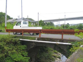 | 大橋 東市来町上伊作田 江口川 橋長:7.5m 橋幅:4.5m 径間:6.7m 拱矢:2.5m 架設:明治 姶良河橋から国道3号線へ戻り南東へ3Km。 長里交差点から県道303号線へ右折、700m先右折したところに架かっています。 |