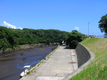 | 相之浦(東塩屋の海運業) 「東シナ海に面し、硫黄島や遠く屋久島まで望め、河口を利用し陸地へ深く切れ込んだこの港は、相之浦・藍之浦・逢之浦・饗之浦などいくつかの表記を持つ江戸から明治にかけて会場交易で栄えた港です。 わずか4Km余りの知覧町海岸には、古くから交易のあったことを示す史跡が多く残されています。港の岩をくり貫いて、もやい綱を結びつけるための「めくい」、13世紀からの貿易陶磁器の散布地、海運の繁栄を思わせる蔵の並ぶ町並み、交易船の往来を管理した浦役所跡、琉球から伝えられた石敢當、船から荷を揚げるために岩場を掘り下げた掘り割りなどがそうです。 東塩屋で1月3日に歌われる「乗り初め歌」は、中世からの「御船歌」の影響がうかがえるとか、平安時代に僧俊寛が鬼界ケ島(現在の硫黄島)に流された逢之湊は、この湊ではないかという興味深い意見もあります。」 |