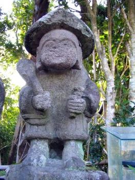 旧麓田の神 喜入町旧麓 元文一年(736)、天神の近くにあったと伝えられたものが何度か移設され、現在の地に移されたものである。この田の神の特徴は、柔和な顔と右手に飯杓、左手に摺小木を持ち、古い田の神の代表的な形をしている。 喜入町教育委員会 |