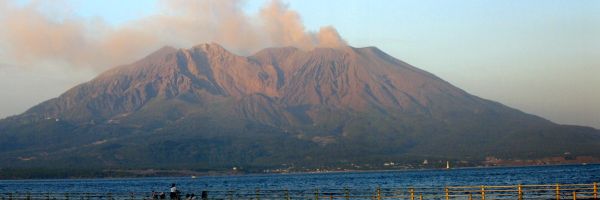 | 今日の桜島 噴煙を上げたので、急遽予定変更して港の方へ向いました。 |