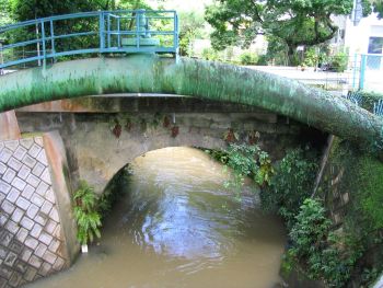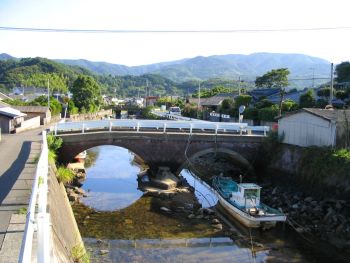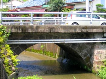 | 園田橋 鹿児島市平川町 五位野川 橋長:9.7m 橋幅:3.5m 径間:7.0m 拱矢:3.5m 架橋:弘化4年(1847) 石工:岩永三五郎 国道226号線から、平川動物園方面へ。 220m先、鋭角に左折。100m先に架かっています。 |