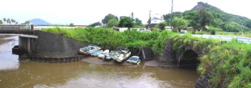 第二木場田(だいにこばた)橋 喜入町小畑 清水川 橋長:5.4m 橋幅:4.5m 径間:5.0m 拱矢:2.0m 架設:大正10年 喜入町JR中名駅から西へ100m、T字路を右折、100m先に架かっています。 |