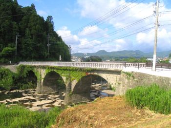 靉靆(あいたい)橋 えびの市大字杉水流字前田 これも今年国登録有形文化財に指定されました。 石造単アーチ橋 橋長13m 幅員10m 架設:享保14年(1729) 水路石敷付 |