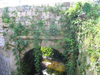 | 川原太鼓橋 宮之城町川原 穴川支流 橋長:4.0m 橋幅:6.0m 径間:3.5m 拱矢:1.6m 架設:大正7年 穴川橋の延長上北側に架かっています。 |