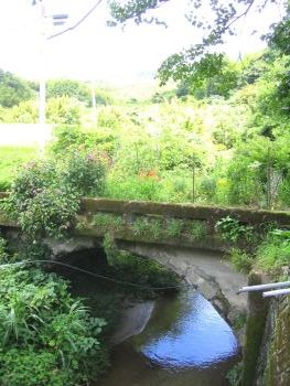 若宮橋 宮之城町久富木 久富木川 橋長:5.6m 橋幅:5.2m 径間:4.5m 拱矢:2.3m 架設:大正15年 玄徳寺から県道392号線を戻り、国道328号線を越え、南東へ4Km先に架かっていますが、上部からでは川が流れていることも、橋が架かっていることも分かりません。 |