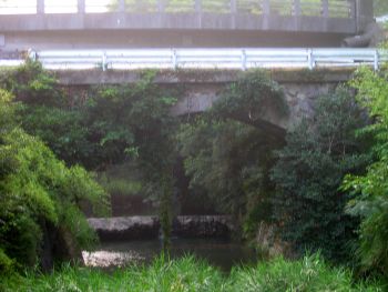 朝平橋 豊後高田市梅ノ木 市指定有形文化財 都甲川 橋長:10.0m 橋幅:3.0m 径間:8.0m 拱矢:4.0m 架設:明治38年 奥に見えるのは現橋 県道29号線、県道655号線との合流点から、県道29号線を400m東進、佐屋ノ元バス停より右折、200m先現橋の右下に架かっています。 |