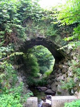 萬歳(まんざい)橋 杵築市大字溝井 溝井川 橋長:7.2m 橋幅:2.2m 径間:4.8m 拱矢:2.9m 架設:明治7年 県道49号線、大分空港道路をくぐり北西へ1.6Km先、大きな右カーブを過ぎ、↓を右折。200m先に架かっています。 ![]() |