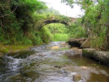 | 渡月橋(とげつきょう) 大田村大字沓掛 宝陀寺 橋長:3.9m 橋幅:1.8m 単径間円弧桁橋 鷂(たか)神社から県道31号線を4Km北上。 左手に宝陀寺あり。 ![]() 石造り大分県一小さな仁王像あり |