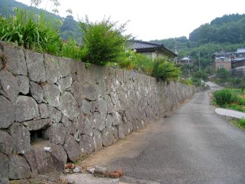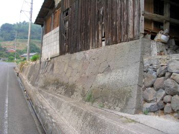 地元ではこの石工さんは有名で、下の2枚の写真、船部上組集落の石垣もこの方の手によるものだそうです。 特に右の写真は隙間なくぴったりと組んであります。 |