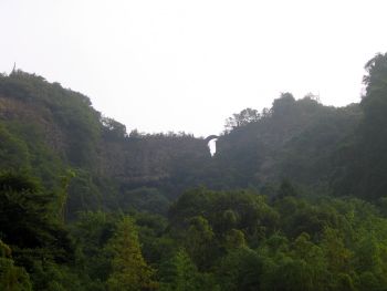 | 天念寺無明橋 豊後高田市長岩屋 橋長:5.7m 橋幅:1.2m 頂上に見えるが、修験道の橋で、途中かなり険しい道だそうで、登るのはあきらめました。 県道29号線から県道543号線へ、2.8Km先左手にあります。 |