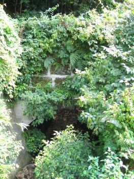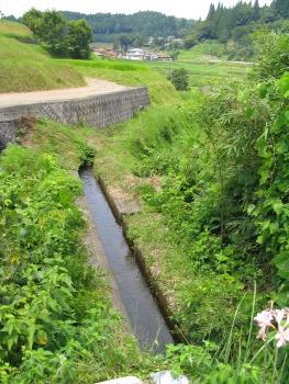 明正井路徳田補水1号橋 緒方町徳田 橋長:9.0m 橋幅:2.0m 径間:5.5m 拱矢:2.0m 架設:昭和20年(1945) 徳田補水は3度目の挑戦です。今回は地元の方に徳田補水の起点を教えてもらい、歩いてたどりました。 恵平谷川橋より県道410号線へ戻り、4.1Km東進。 (県道7号線からは、米山で県道410号線へ。850m西)。 上緒方小学校前バス停より左折、200m先(橋を渡って上り坂)赤い屋根の家の前を左折。 200m先民家の手前、道路の左手に架かっています。 |
