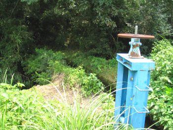 | 明正井路2幹6号橋 緒方町上冬原 竜千寺 橋長:7.0m 橋幅:2.7m 径間:2.1m 拱矢:0.9m 架設:大正12年(1923) ここは県道から見えますので楽にたどり着けました。 県道7号線、米山から1.1Km南下。 左手に見えます。 |