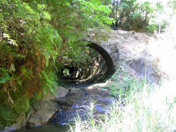 | 桂ヶ谷水路橋 宮崎県北諸県郡山之口町桂ヶ谷 橋長:8.5m 径間:5.5m 拱矢:3.3m 天端幅:1.5m 下幅:2.1m 帰りに立ち寄りました。草木が刈ってありきれいになっていました。 |